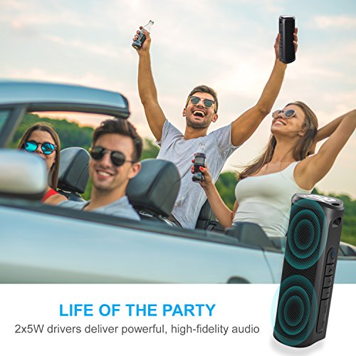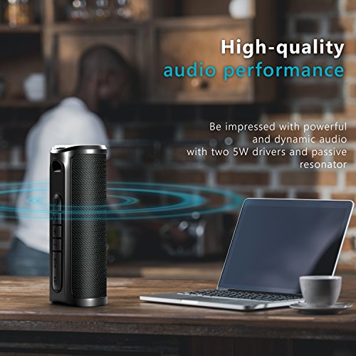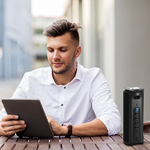 -. Feature : ✔️ HIGH QUALITY CLEAR SOUND - Experience your music in full-bodied stereo realized through dual 5W drivers for each cylinder together with 2x2'' low frequency radiators and combined with a subwoofer on each cylinder. / ✔️ POWERFUL 360° SURROUND SOUND AND DEEP BASS - Bluetooth Speaker provides 360°surround sound for room-filling audio. You will enjoy true 3D stereo sound. Moreover, you can connect two speakers to one device simultaneously. / ✔️ CONNECT OVER BLUETOOTH IN SECONDS - Bluetooth Standard 4.1 ensure fast and easy connection to your phone or other Bluetooth audio devices from up to 33 ft away. / ✔️ 20 HOURS LONG PLAY TIME - Built-in rechargeable 1800mAh battery supports up to 20hrs of playtime before needing another recharge. Portable size make this wireless speaker the best choice for any trip, a picnic, or outdoor party, etc. / ✔️ WATER RESISTANT IPX4 - IPX4 rating means that speaker can resist gentle water spray and splash but can not be partially or fully submerged. The Bluetooth speaker is made of water resistant fabric body, no more worrying about rain or spills.