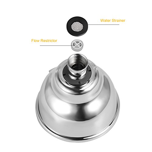 【Removable Flow Restrictor】There is a removable 2.5GPM flow restrictor in the showerhead, which can help to save water while using. If you want to enjoy higher pressure and flow, please remove the restrictor.
