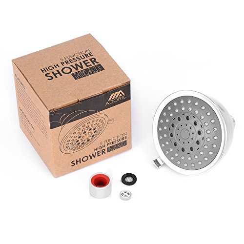 Adoric Rain Fall High Pressure Showerhead, Wall-Mounted Filtered 5 Settings Shower Head with Removable Water Restrictor Chrome Finish for Bathroom & Hotel, Best Showerhead for Relaxation and SPA