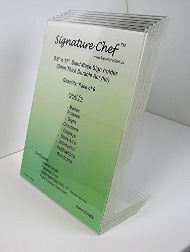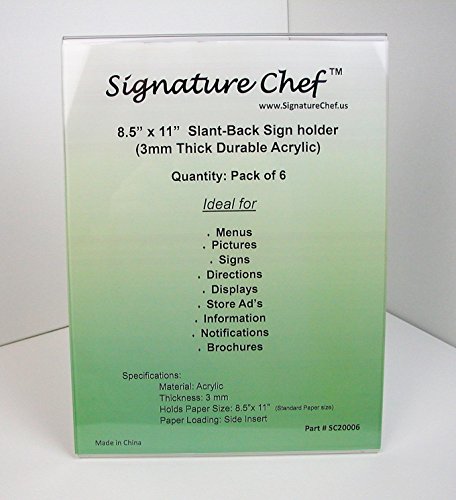 3mm Thick, Slanted Sign Holder / Photo Frame 8.5x11 inch 6 Pack