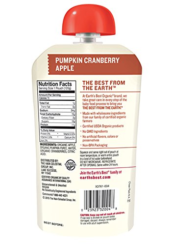 EARTH'S BEST ORGANIC STAGE 3, PUMPKIN, CRANBERRY & APPLE, 4.2 OUNCE POUCH (PACK OF 12) (PACKAGING MAY VARY)