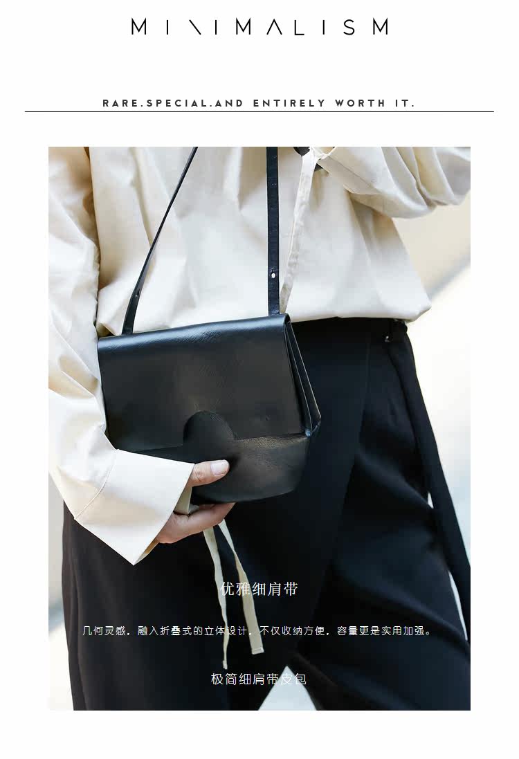 纯黑牛皮革,百搭的细肩带,