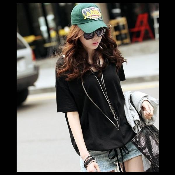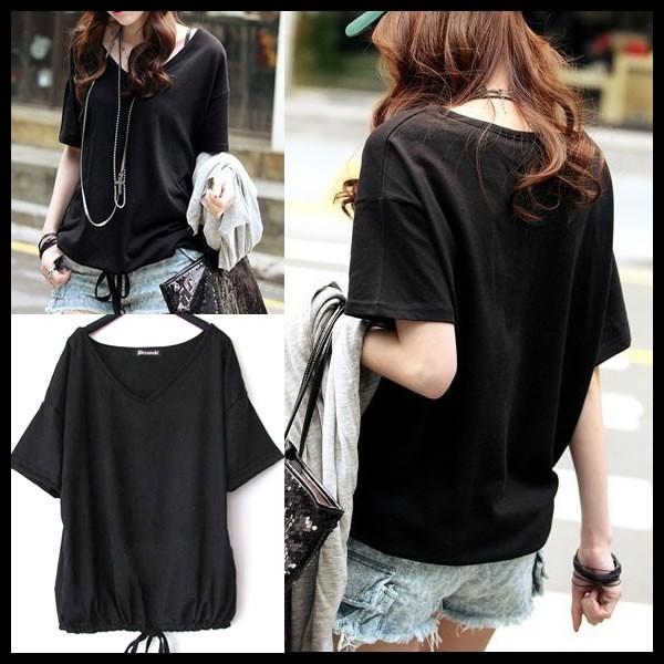 | 大人気 仕様リニューアル 袖口ゆったり ドルマンスリーブ Vネック 半袖 Tシャツ ブラック カットソー 【レディース 女性 黒 black ブラック クロ T-shirts Black 無地 Tシャツ ロンデルブラック ブラック モノトーン[T-SHIRTS Tシャツ]】 | |