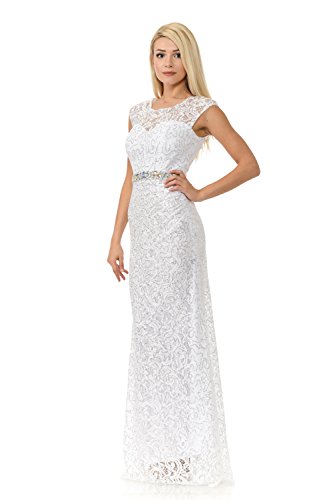 Binding : Apparel Product Description TwinMod Sweetheart Sheer Lace Cap Sleeve Mermaid Bridesmaid Prom Dress Love love love this elegant dress. Pure sophistication. Sheer lace with high neckline and sweetheart insert. Cap sleeve with crystal embellished waistband. Floor length mermaid style skirt. Fully lined with hidden back zipper. Special Occasions include Homecoming, Winter Formal, New Years Eve, Prom, Bridesmaid, Bridal, Bachelorette, Reception, Maid of Honor, Mother of the Bride, MOH, Party, Special Events and more As for fit, please advise size chart in images for the measurements to choose the right fit for you. 0
