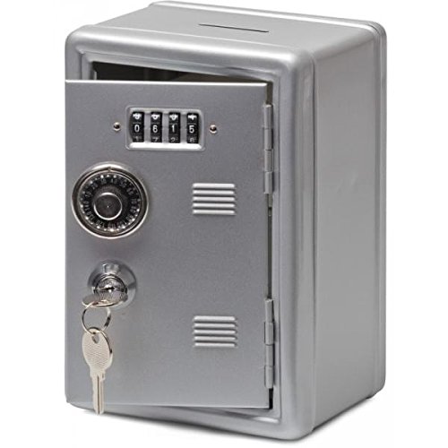 - Lockable metal storage box with savings counter