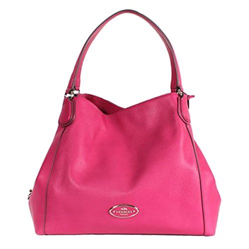 -. Title : Coach 33547 Edie Pebbled Leather Shoulder Bag Silver/fuchsia