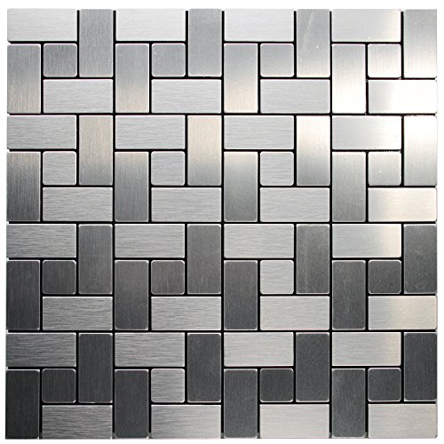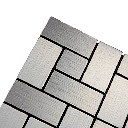 -. Feature : DIY mosaic tiles; Peel & stick;fast installation process,Save money on labor / Tile Size: 12.2" x 12.2" x 0.196" Thick. (Chip Size:0.984"x0.984" + 1.968"x1.968") / Tile Color: Brush Sliver aluminium tiles / Suitable for most indoor applications, (kitchen backsplash, accent walls & decorative purposes) / Dry installation; No thin-set backing & finishing grout, No mess