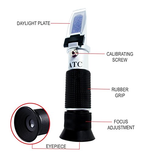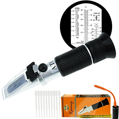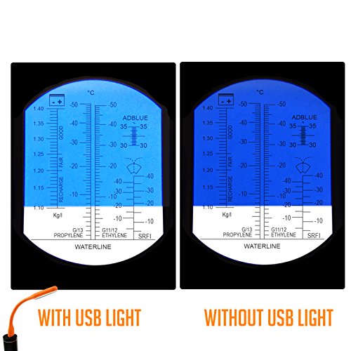 Kibeland Refractometer for Car Operating Fluid with ATC, 5 Scales, AdBlue, Engine Coolants, Antifreeze, Cleaning Fluid, Battery Fluid, with EXTRA Mini USB Light
