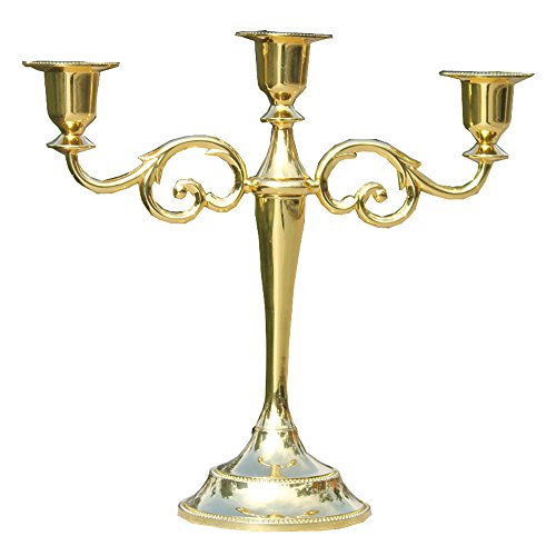 3-arms metal candle holder 27cm height candle stick wedding candle stand (Gold)