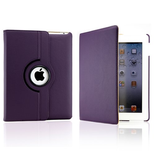 Gearonic 360° Rotating Magnetic Leather Case Smart Cover with Swivel Stand for iPad 2, Purple (344UPUIB)