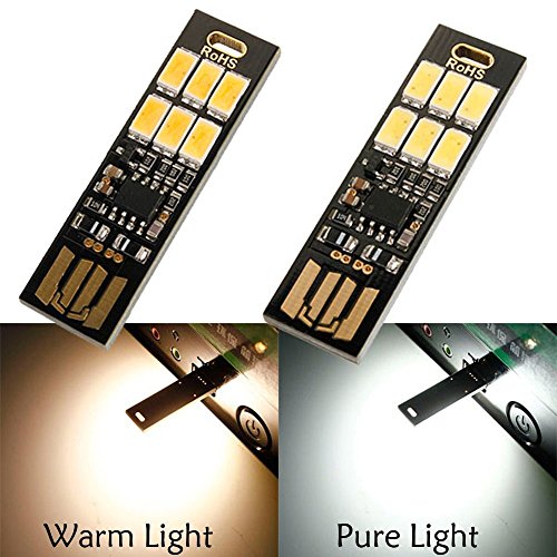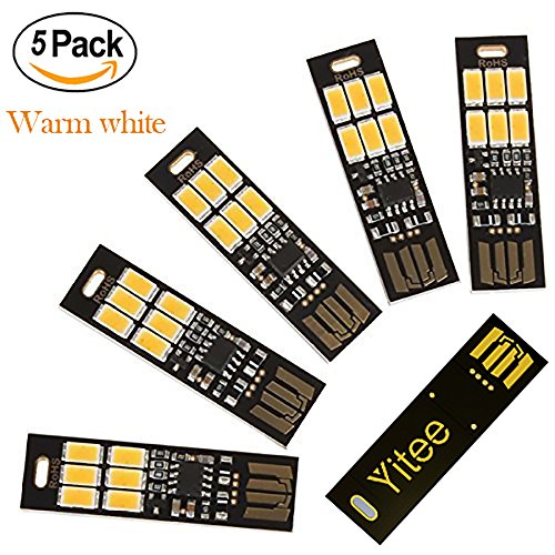 Yitee 5pcs USB Light Keychain Super Bright 6 LEDs Mini USB Light Lamp with Smart Touch Electrodeless Dimming Switch For Laptop Keyboard Light(Warm White)