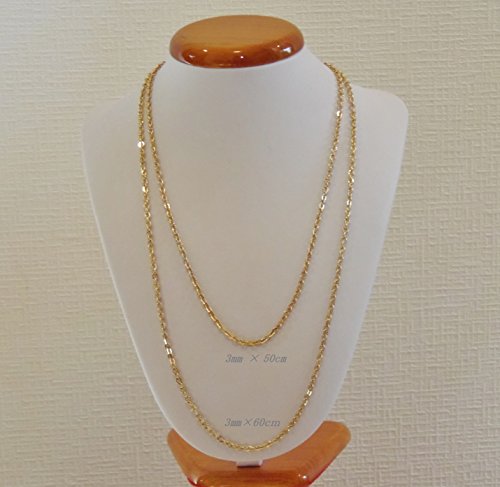 -. Title : サージカルステンレスチェーン 【カラー】イエローゴールド 幅3㎜×60cm 長いチェーンでがっちりした男性にも◎ つぶし小豆が綺麗