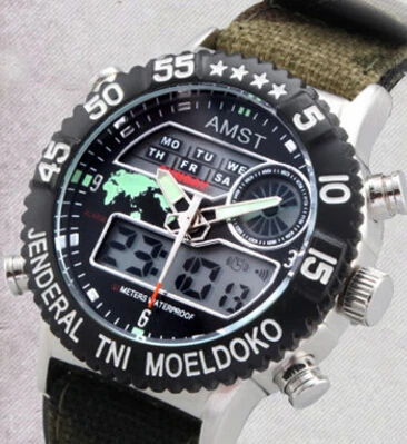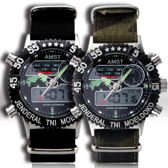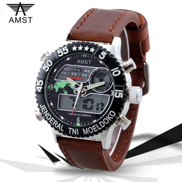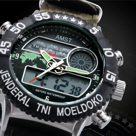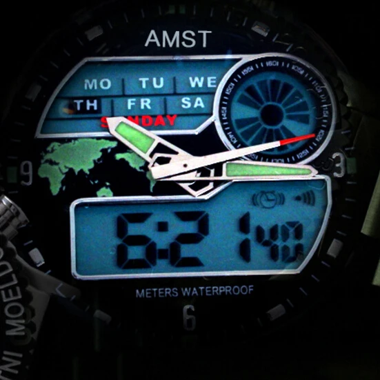| [해외] Led 듀얼 디스플레이 amst 스포츠 남성 석영 시계 맵 달력 남성 야외 등산객 시계 30 메터 방수 손목 시계 |