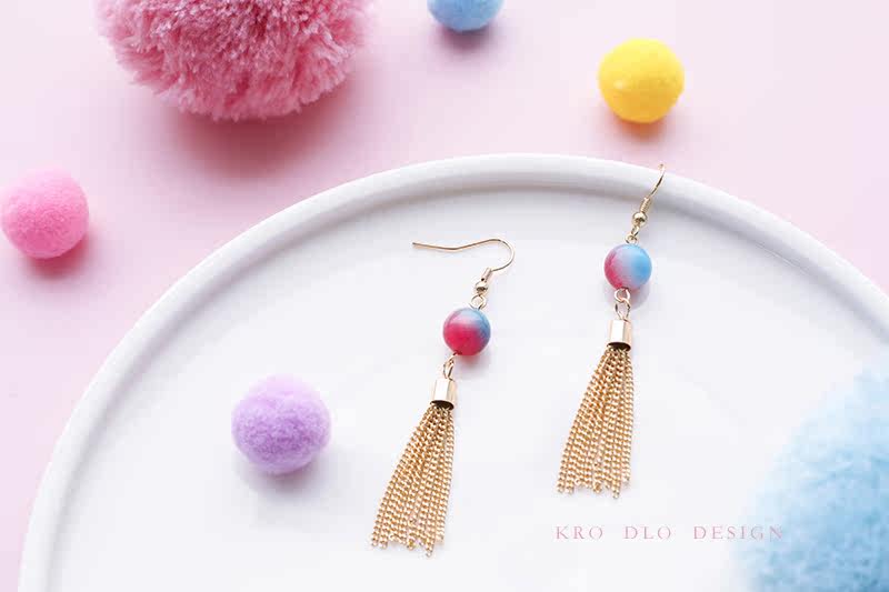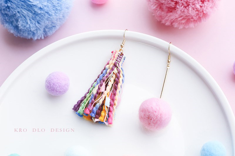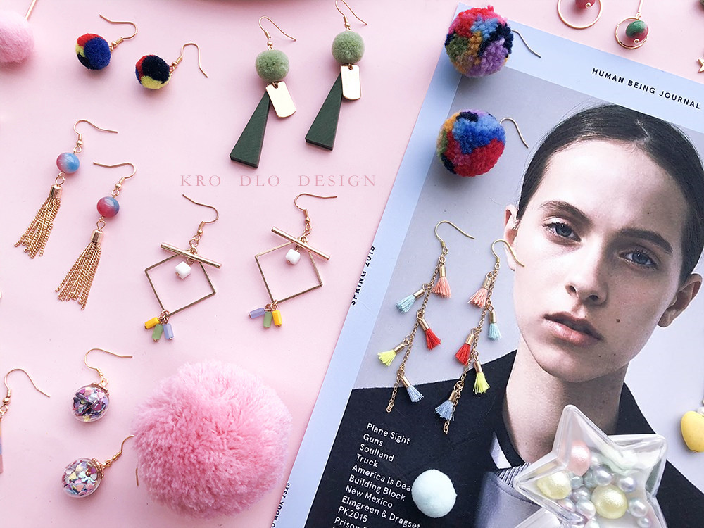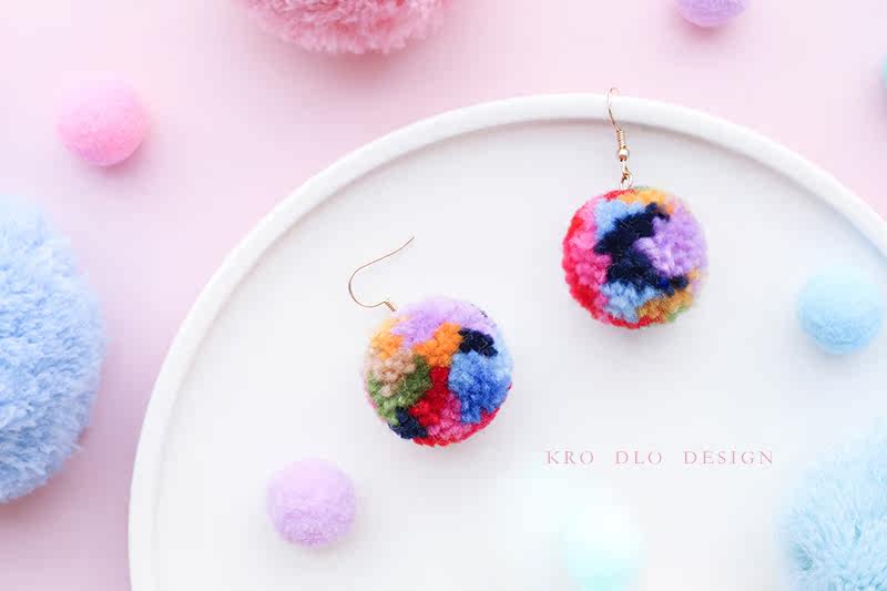 | 尺寸:全长8cm/7.8cm 直径2.5cm | 材质:925银针 保色合金 羊毛球 编织流苏 |