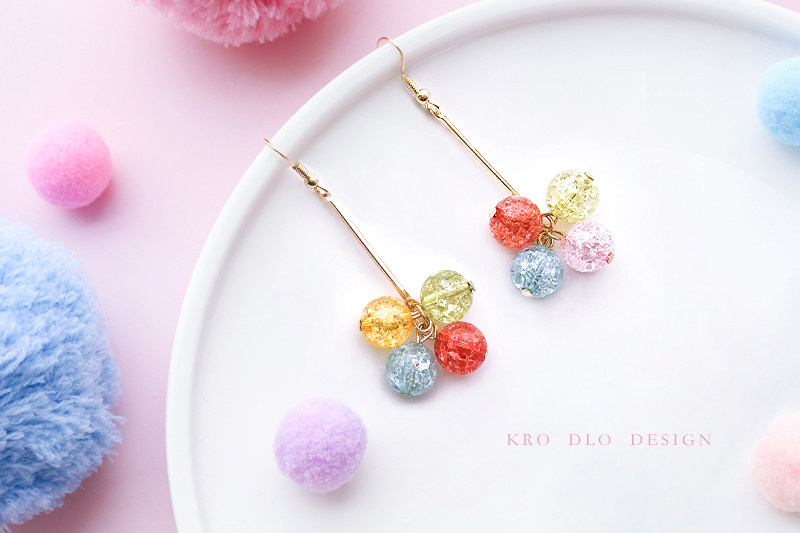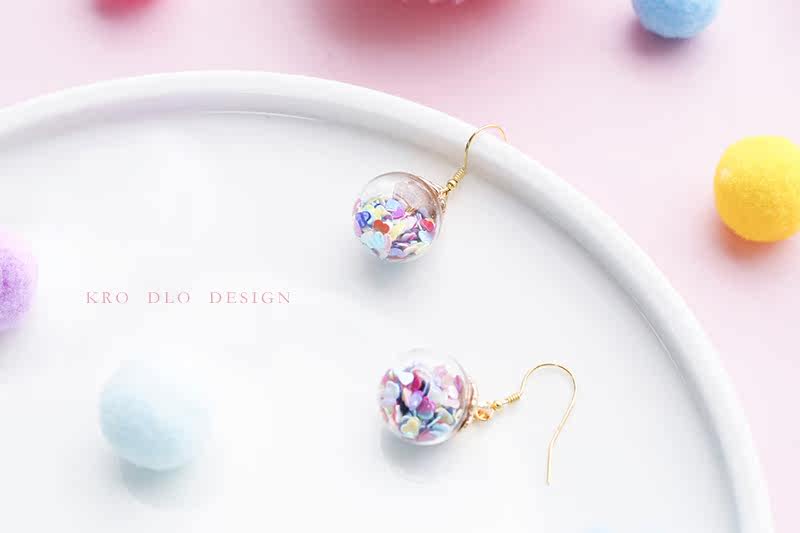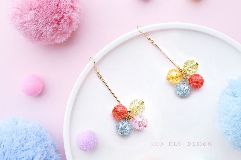 | 尺寸:全长6.2cm 直径2.4cm | 材质:925银针 保色合金 爆裂亚克力珠 |