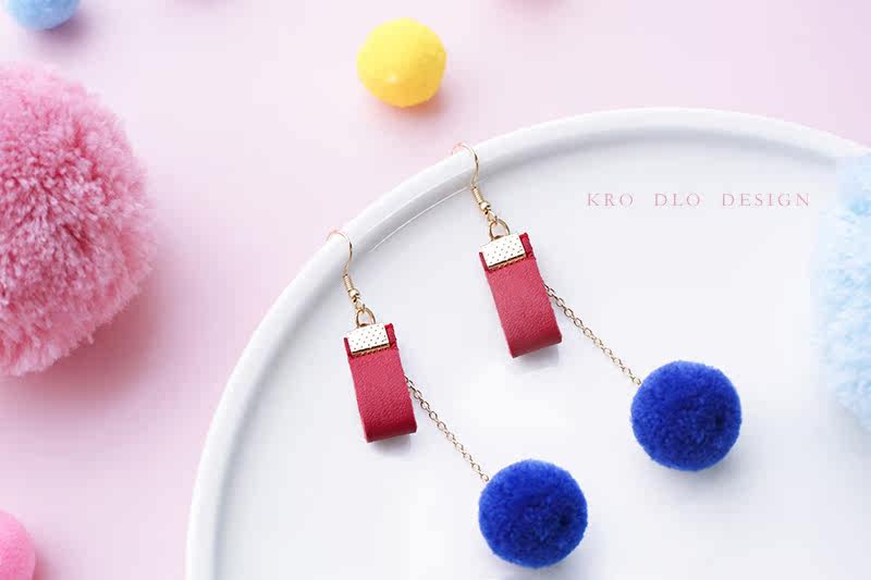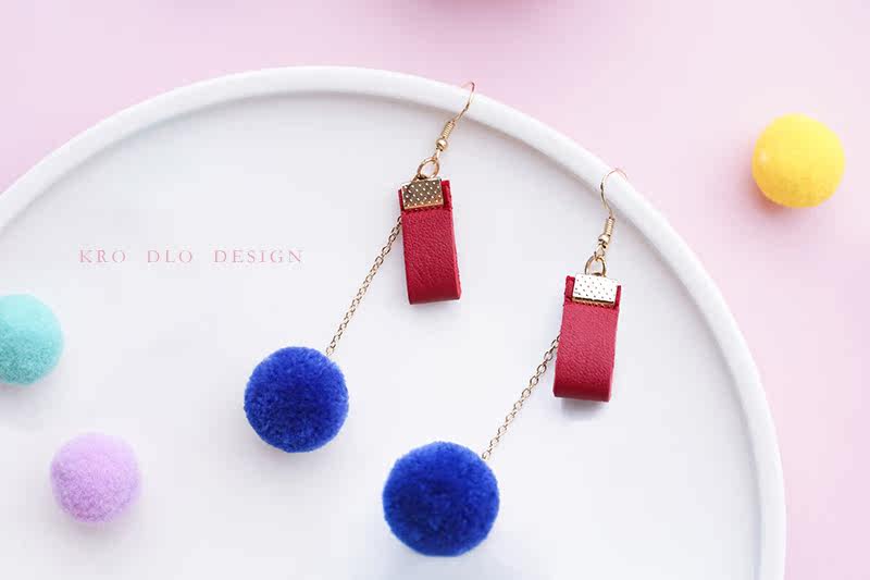 | 尺寸:全长8.5cm 直径2cm | 材质:925银针 保色合金 皮革 开司米毛球 |