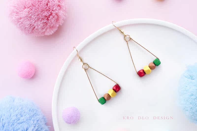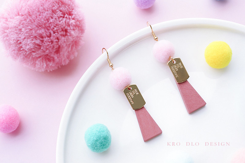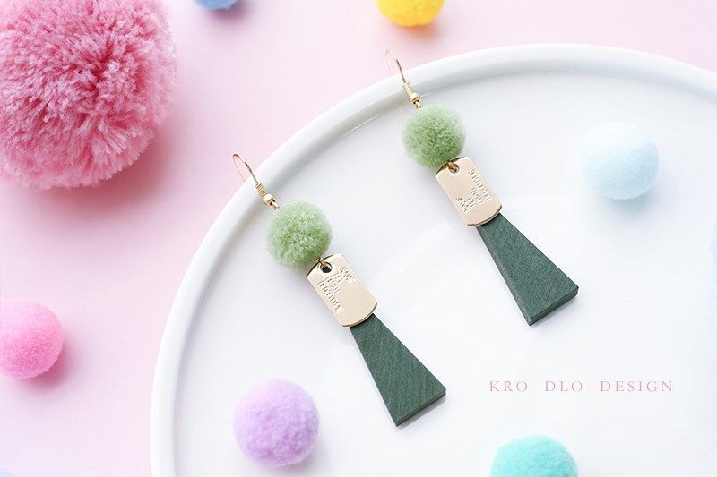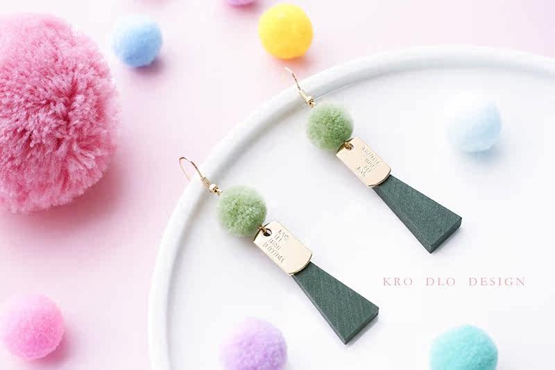 | 尺寸:全长7.2cm 直径1.5cm | 材质:925银针 保色合金 染色原木 开司米毛球 |