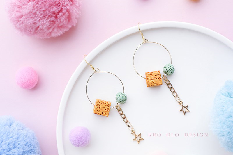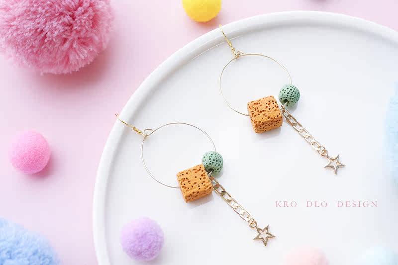 | 尺寸:全长6.2cm 直径3.2cm | 材质:925银针 保色合金 陶土 |