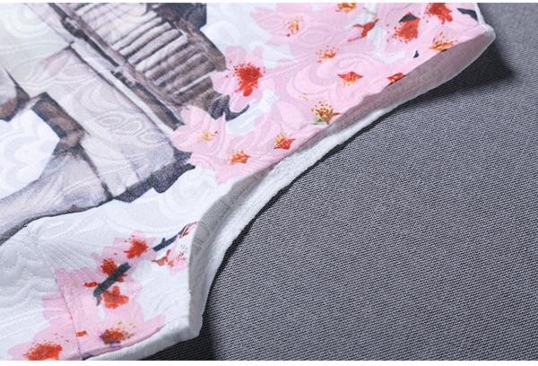 個性的 レトロ桜柄プリント ウエスト切替ワンピース 白/ S
