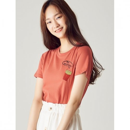 ● 깔끔한 솔리드 컬러에 포테이토 엠브로이더리 레터링 디테일로 포인트를 준 티셔츠.