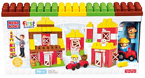 -. Feature : Eight-panel Friendly Farm builds over three feet high for kids who love to stack tall / 70-piece set includes Farmer, Cow, Horse and Chicken Block Buddies, First Builders blocks and tractor / Panels rearrange for building and rebuilding / Perfect for little hands / Compatible with all First Builders sets