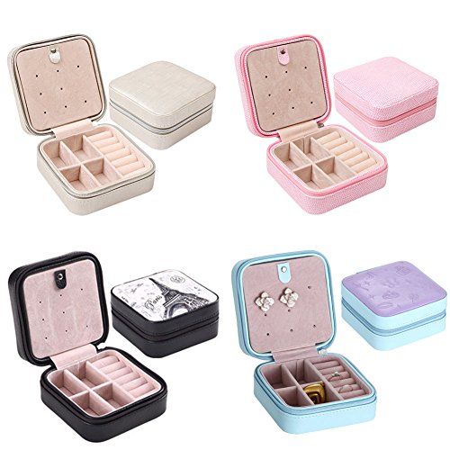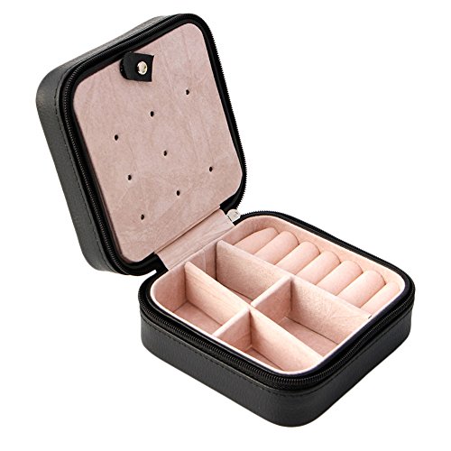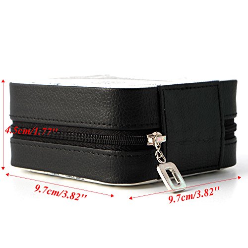 -. Feature : Material: Synthetic leather exterior (not genuine leather but premium synthetic PU leather)+Velvet lining / Size: app 9.7cmx9.7cmx4.5cm/3.82"x3.82''x1.77'' / Simple and compact design with elegant outlook and could be used to storage collective / Easy Portable And Suitable For Organizing Jewelry Like Earrings, Necklaces, Rings etc / 3 parts, raw of ring rolls and a elastic wall pocket; suitable for holding earrings, rings, necklace, etc