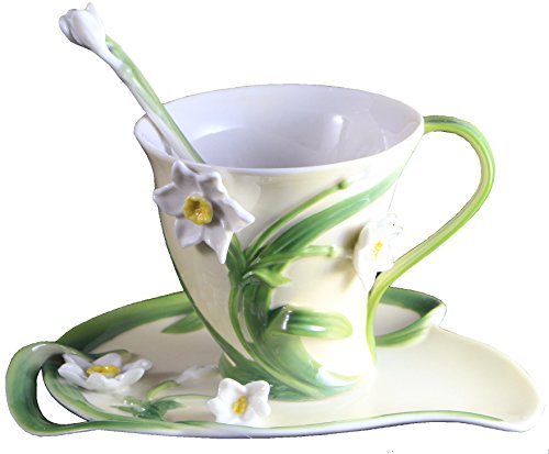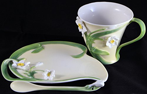 -. Feature : UNIQUE DESIGN - Includes authentic, hand-painted Narcissus design on tea cup, saucer, and spoon / DELICATE-LOOKING, YET DURABLE - This tea set is made of porcelain, which gives it a delicate look, but is resistant to cracking, staining, and scratching / MULTIPLE USES - Pamper yourself with this elegant setting, use as an attractive display, or makes a great gift / NON TOXIC - No lead in the tea cup, saucer, or spoon, making your tea set safe for daily use / COLLECT THEM ALL - 5 other flower designs available from designer; build your collection one set at a time