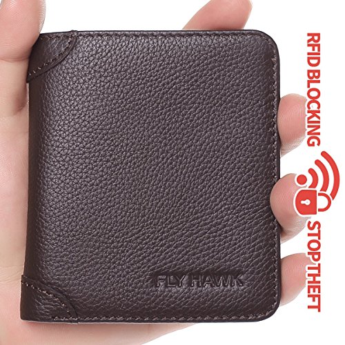 -. Title : FlyHawk.Inc Genuine Leather RFID Blocking Wallets Mens thin Wallet
