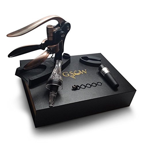 - TAKE HER BREATH AWAY: GSCW’s Best Selling Rabbit Corkscrew now comes with our top rated wine aerator, foil cutter, black vacuum pump, and replacement screw. Place it on the display stand and watch it glow as you show it off to all of your friends, family and house guests.