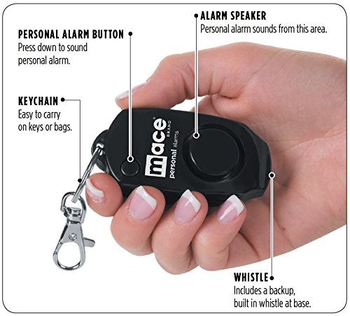 Mace Brand 130 dB Personal Alarm with Built-In Backup Whistle and Bag Purse Clip Black Model 80457