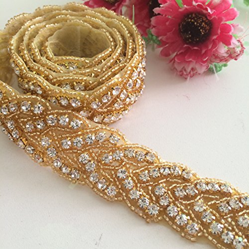 ShiDianYi Bridal Wedding Gold Rhinestone Sash RA200