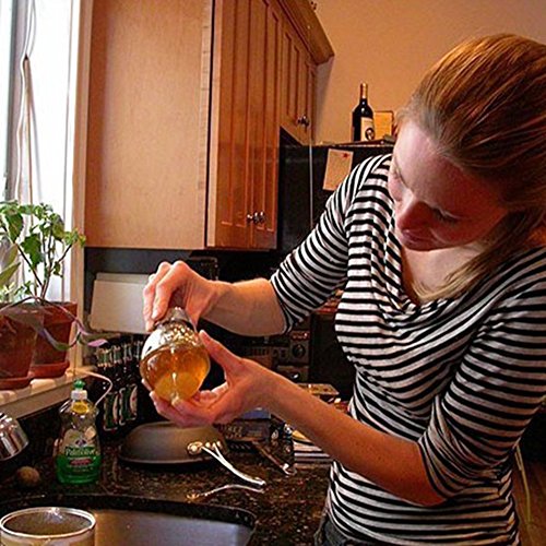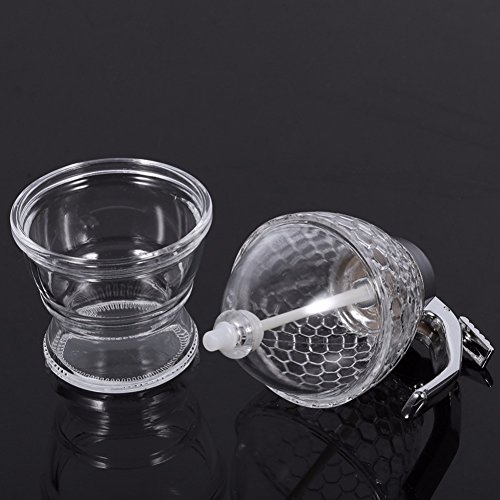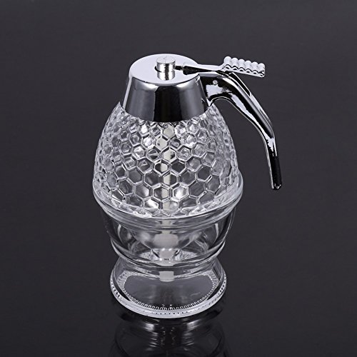 Features: The ensemble comes in three parts: a lid, a glass honey container and a glass stand. This honey dispenser releases a thin drizzle of honey into your tea, steamed milk or on top of toast, hot cereal, pancakes or cornbread. New way, convenient and sanitary, easy to store and wash. Green food grade acrylic material, non-toxic UV vacuum plating. This simple item will quickly become indispensable at your breakfast table.