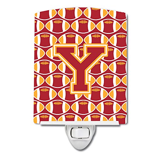 Caroline's Treasures Letter Y Football Cardinal and Gold Ceramic Night Light, 6 x 4", Multicolor