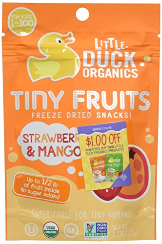 Our Tiny Fruits pouches are packed with up to a whopping 1/2 pound of real organic fruits. That's three servings of fruit in every pouch! With our incredible freeze-drying process, all those terrific nutrients and enzymes are naturally preserved and ready to supercharge your supertot. Each piece of fruit is perfectly diced for pick-up-able, bite-sized pieces. Tiny Fruits come in a convenient resealable pouch, perfect for on-the-go or lunchbox snacking that can be enjoyed by the handful or as a topper on cereal or yogurt. A super food for your little super human's healthy development and growth!Feature