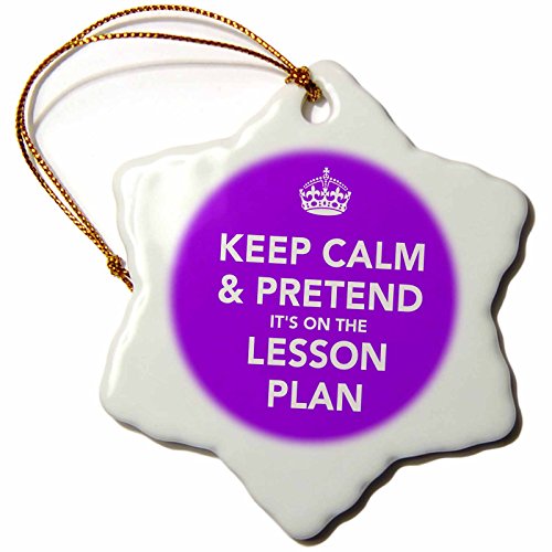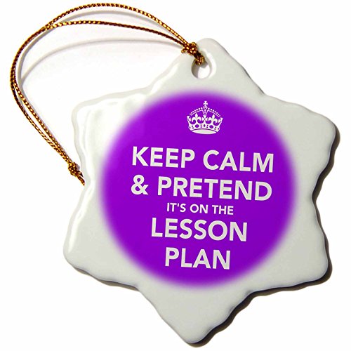 3dRose LLC orn_149838_1 Porcelain Snowflake Ornament, 3-Inch, "Keep Calm and Pretend It's on The Lesson Plan Teacher Humor Professor Humor"