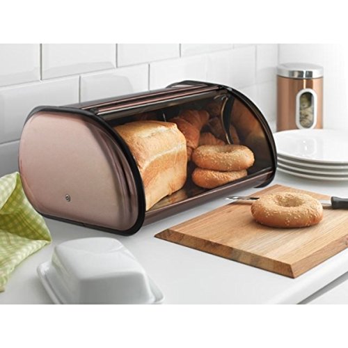 Studio : Imperial Home Publisher : Imperial Home Product Description Keep all your baked goods inside this modern-looking copper bread box while maintaining its freshness and yummy taste. Copper is such a unique color and metal. It adds a different type of flare to your normal everyday kitchen items. This bread box definitely stands out, not only in design, but color, too. The compliments will come pouring in with this puppy. It slides upward, which is great for easy access. When you lift it open, you instantly smell the delicious aroma of all of your delectable baked goods. It's very attractive, and looks great on your countertop in your kitchen or on the buffet in the dining room. Ideal for everyday use, but it's also a nice bread holder for parties and special occasions. 0