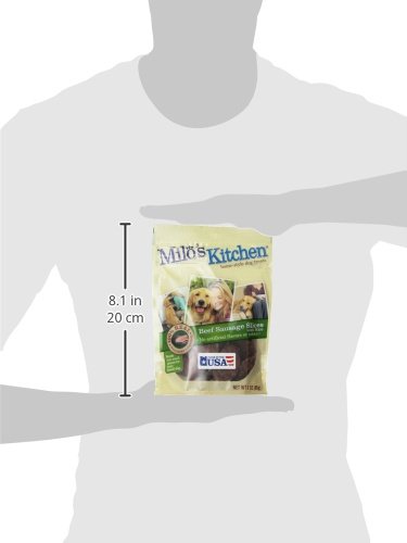 • Contains 12 3-Ounce bags of Milo's Kitchen beef sausage slices with rice dog treats