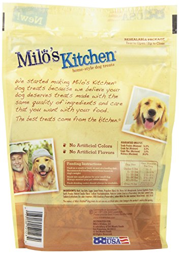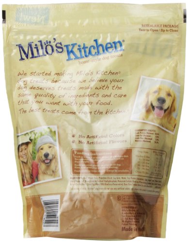 • Contains one 15-Ounce bag of Milo's Kitchen chicken grillers recipe dog treats