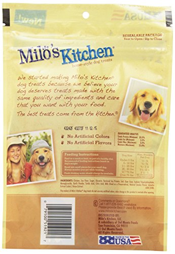 • Contains one 15-Ounce bag of Milo's Kitchen chicken jerky strips dog treats