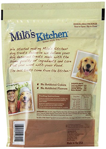 • Contains 12 3-Ounce Milo's Kitchen steak grillers beef recipe with angus steak dog treats
