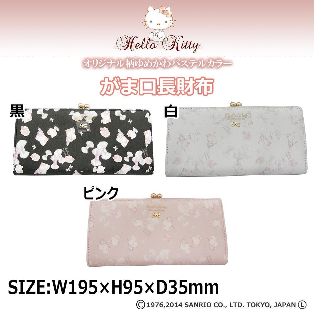 | 可愛いキティちゃんがプリントされたがま口の長財布です。カード収納・お札やレシート、小銭をすっきり収納できるのが魅力です。 |