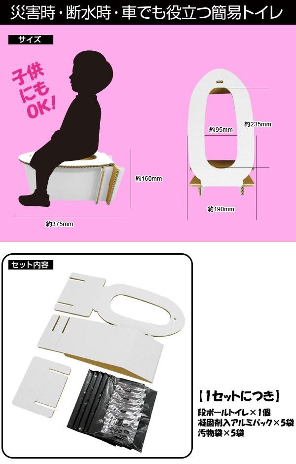 | セット内容 | (段ボールトイレ×1個、凝固剤入アルミパック×5袋、汚物袋×5袋)×10セット |