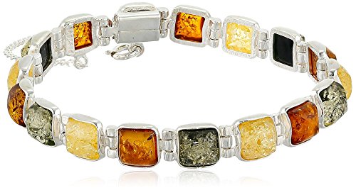 The Sterling Silver Multi-Color Amber Bracelet displays a unique combination of amber gemstones from all over the world. Square-shaped green, honey and lemon amber pattern around a 925 sterling silver bracelet to create an exquisite piece that is a wonderful match against neutral-tone fashions. Seven inches in length, this bracelet is finished with a box-with-tongue clasp for easy on and off.Feature