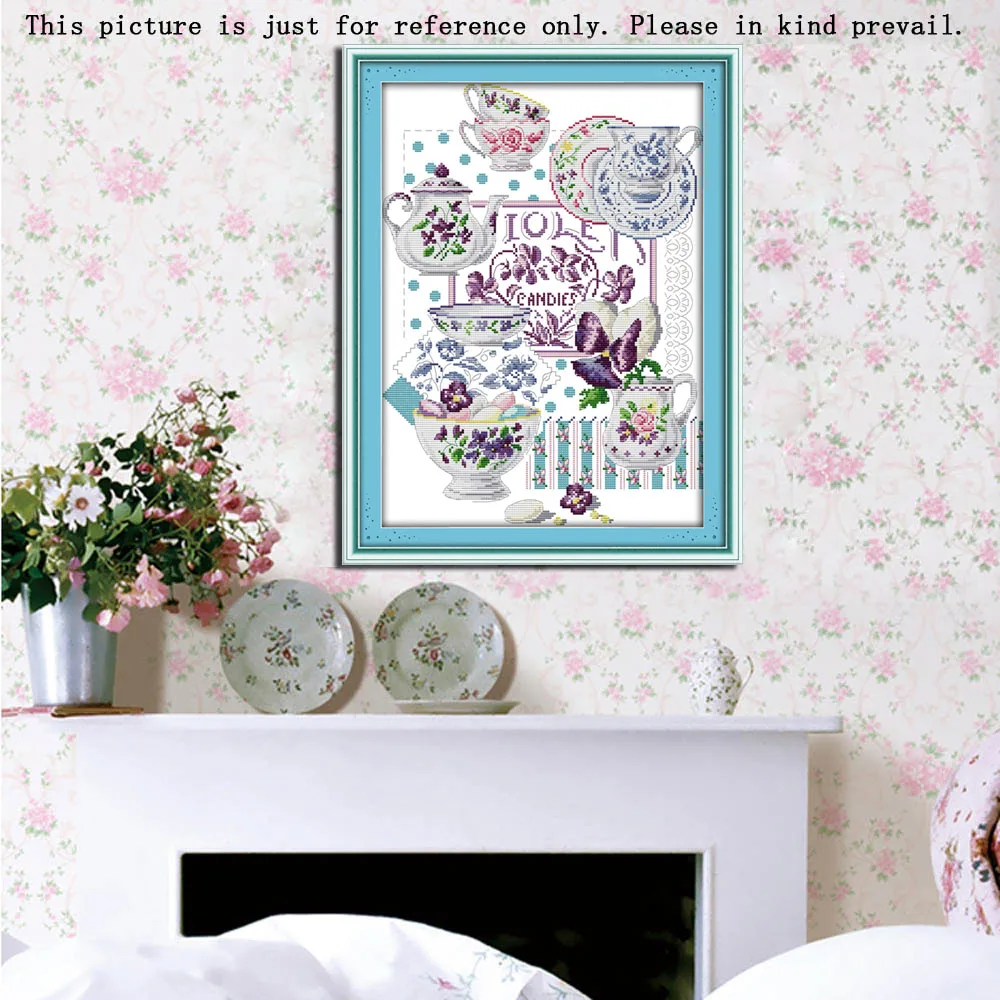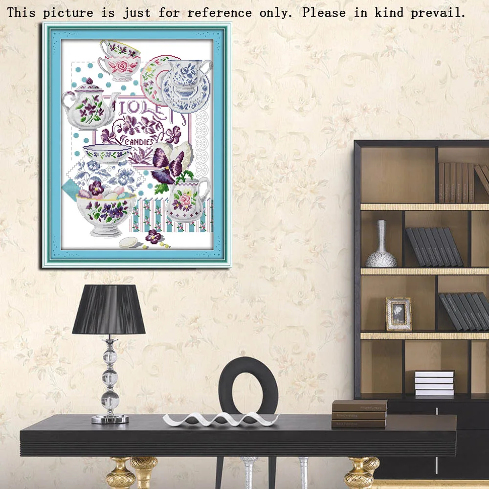 DIY Fashion Chinese Counted Cross Stitch Kits 14CT Needlework Embroidery Kit Teacups Pattern 3D Cross-Stitching Handmade Decor
