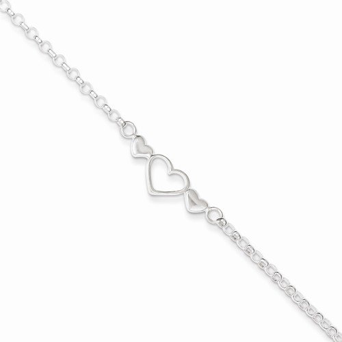 Solid 925 Sterling Silver 10inch Polished Triple Love Heart Anklet Bracelet 10"
