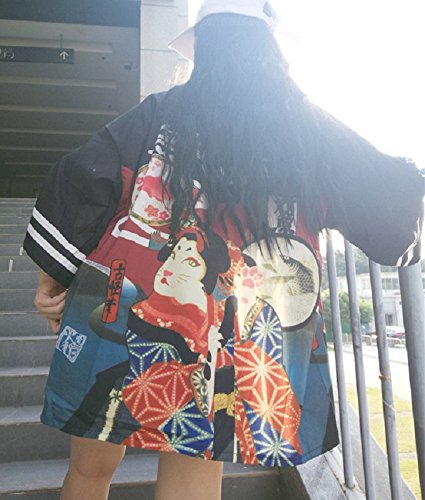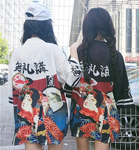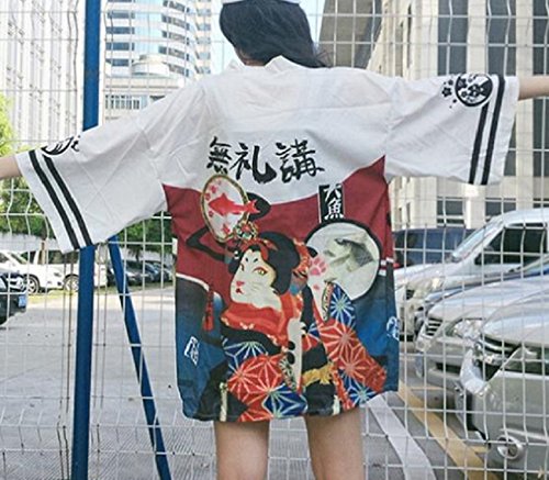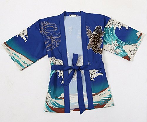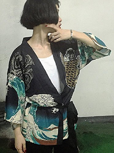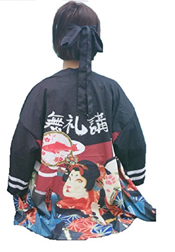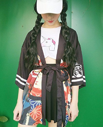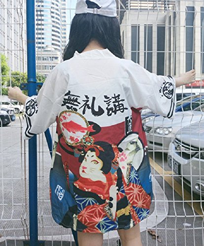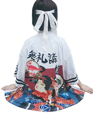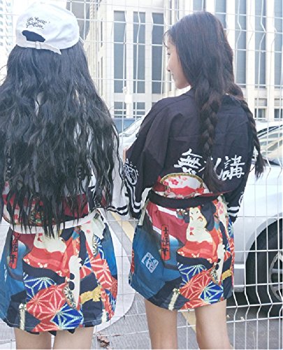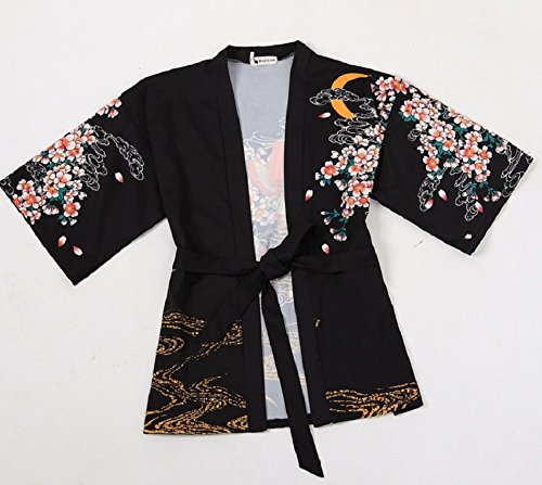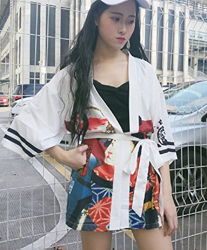 | K.N. Women's Short Robe Kimono Yukata Japanese Coat Happi with Belt |