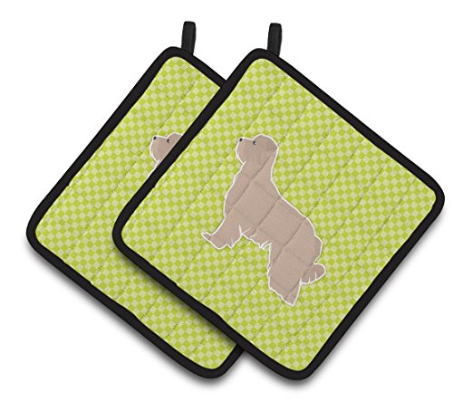 Caroline's Treasures Pyrenean Shepherd Checkerboard green Pair of Pot Holders BB3818PTHD, 7.5HX7.5W, Multicolor