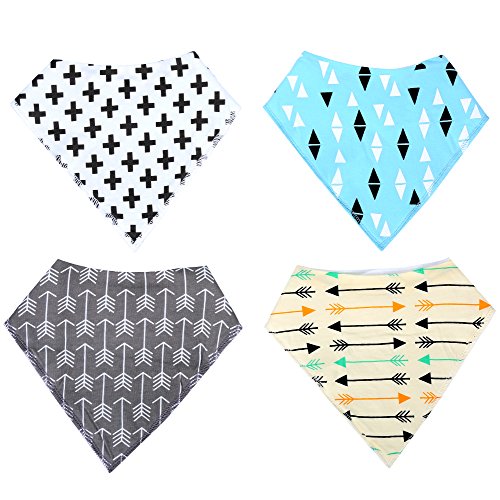 Have 2 snap closures making the bibs easily adjustable (no velcro) Are made of 100% cotton backed by absorbent fleece (no plastic) Are soft and comfortable to wear Don't cover up a baby's outfit but accessorize it Keep a baby dry longer - help protect against drool rash and reflux Look cool and fashionable unlike a regular bib Are great for droolers and teething babies. They are the perfect drool bibs! You can be assured these bibs will last the distance. They have been independently tested for shrinkage and colorfastness.