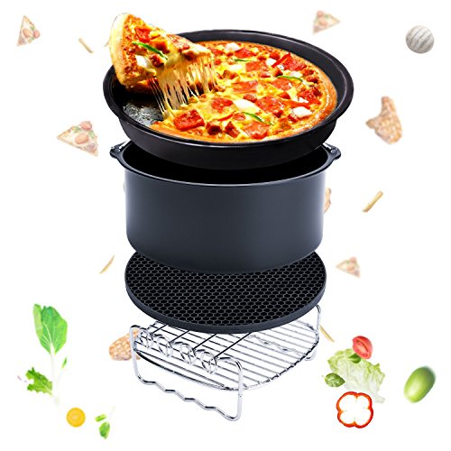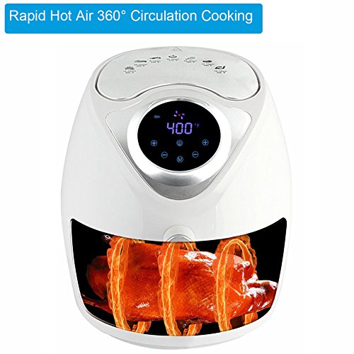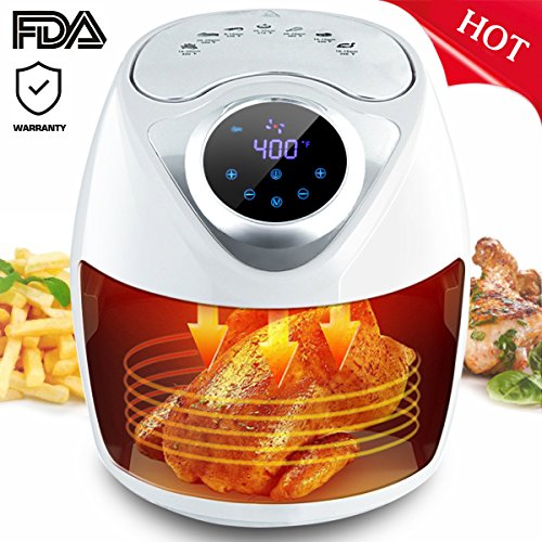 7-in-1 Cooking Features: Touch screen air fryer with 7 preset smart cooking programs to creat healthy meals: Chips, Meat, Shrimp, Cake, Chicken, Steak, Fish; This air fryer is perfect for frying, baking, grilling and roasting with little or no oil