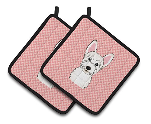 Caroline's Treasures Checkerboard Pink Westie Pair of Pot Holders BB1226PTHD, 7.5HX7.5W, Multicolor